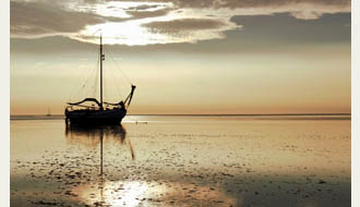... segeln Sie zu den friesischen Inseln, fallen Sie trocken mit einem Platbodem oder einer Lemsteraak auf einer Sandbank ...