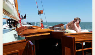 • Vom Liegeplatz der ELISABETH erreicht man entspannt in ca. 15 Minuten an der Schleuse zum IJsselmeer. Abhängig von der Windrichtung segeln Sie entlang der friesischen Küste Richtung Norden (Hindeloopen, Workum, Makkum) um dann die Schleuse Kornwerderzand zu passieren um einen Wattenmeertörn zu fahren. Einen detaillierten Segeltörnvorschlag dieser Route finden Sie unter: eine Woche Wattenmeer ab Stavoren. | |