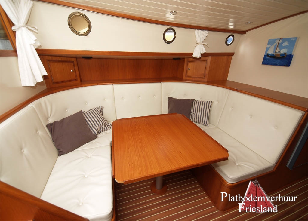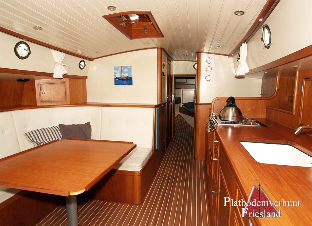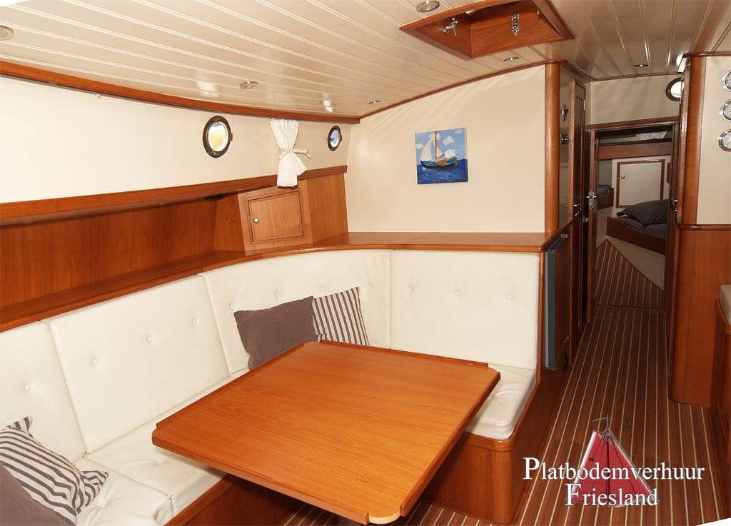 Unsere kleinste Lemsteraak, die "Elisabeth" (seit ein paar Jahren verfügbar und beliebt auf dem Chartermarkt), gebaut für die private Nutzung als handsames Familienschiff. Gemütliches Interieur für max. 7 Personen, eine Kombüse an Steuerbord im Salon eingebaut, mit 3-Flammen Gaskocher und Kühlschrank, kleiner Kartentisch, U - Bank mit Tisch.