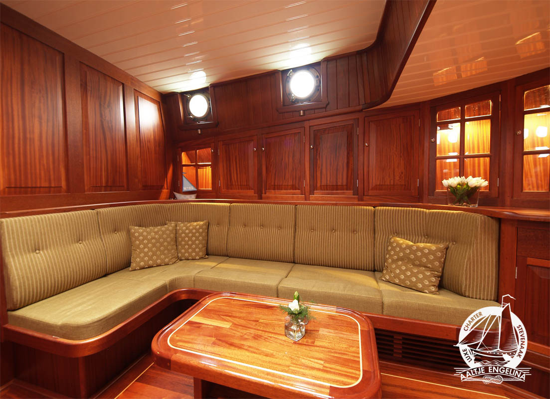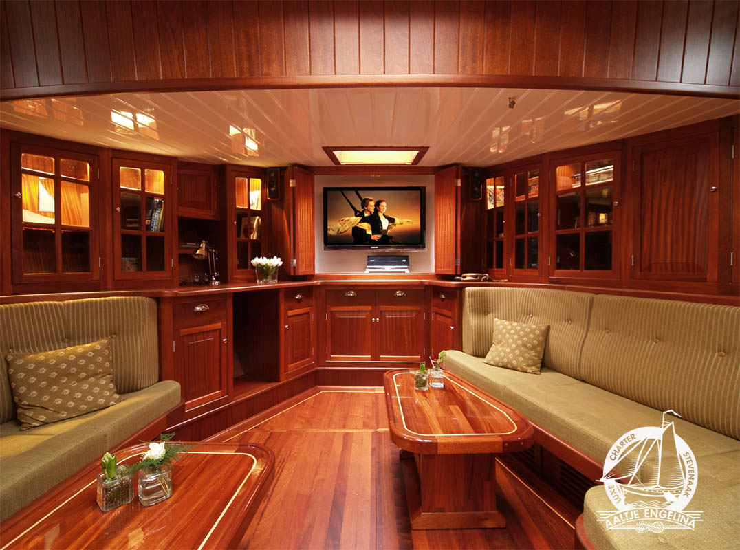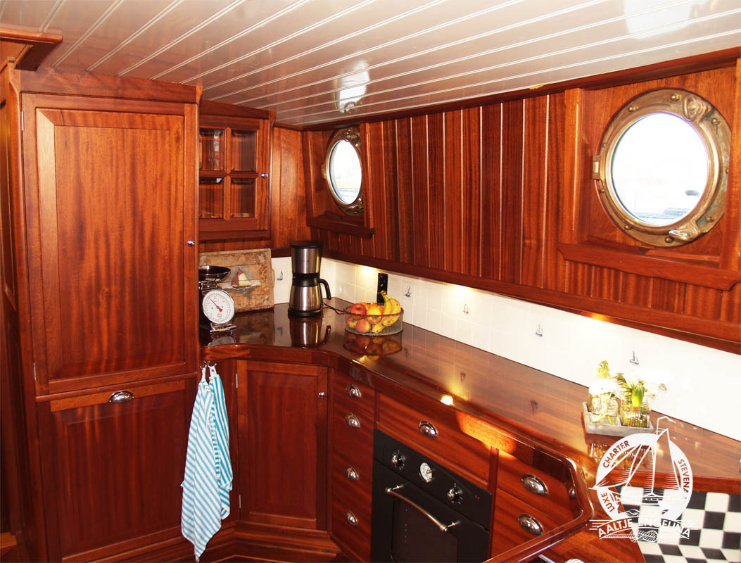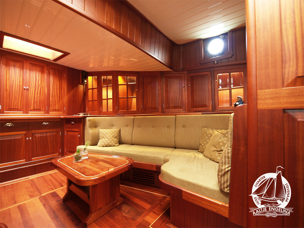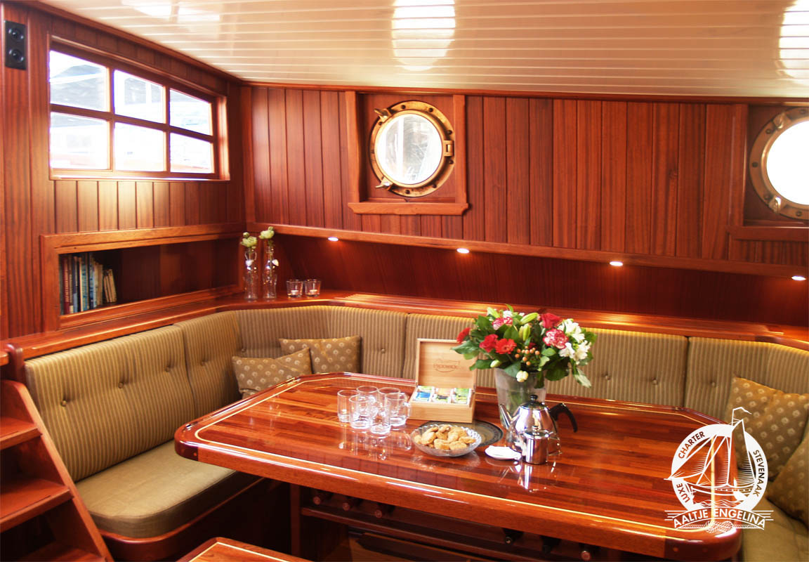 De slaaphutten zijn allemaal voorzien van warm en koud stromend water, 220 volt, voldoende hang- en legkasten, en centrale verwarming waarop u uw handoeken lekker warm kunt maken. en 220 volt. Er zijn twee douche toilet units, beide voorzien van centrale verwarming 220 volt en een wastafel met warm en koud stromend water. In het voorste gedeelte van het schip vindt u een salon met lage banken en tafels, in het achterste gedeelte de keuken met een grote zithoek waar gezellig met elkaar gegeten kan worden. De keuken is uitgerust met een 4-pits electrisch kooktoestel, vaatwasser, oven, grote koelkast ...
