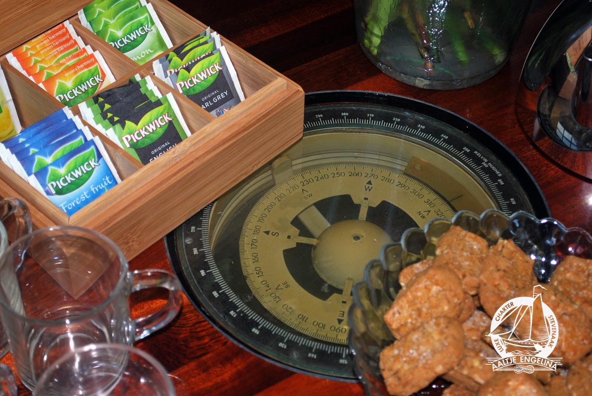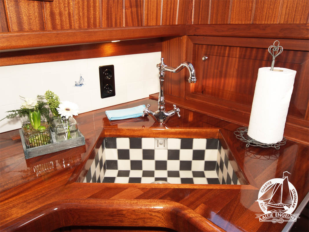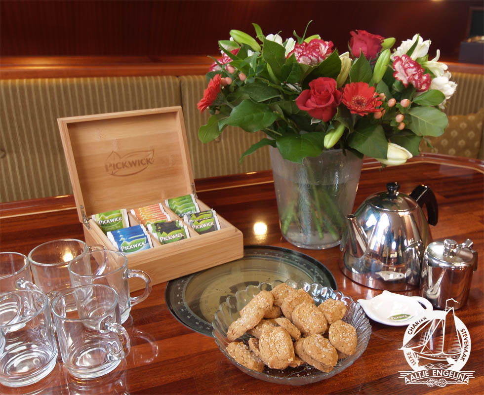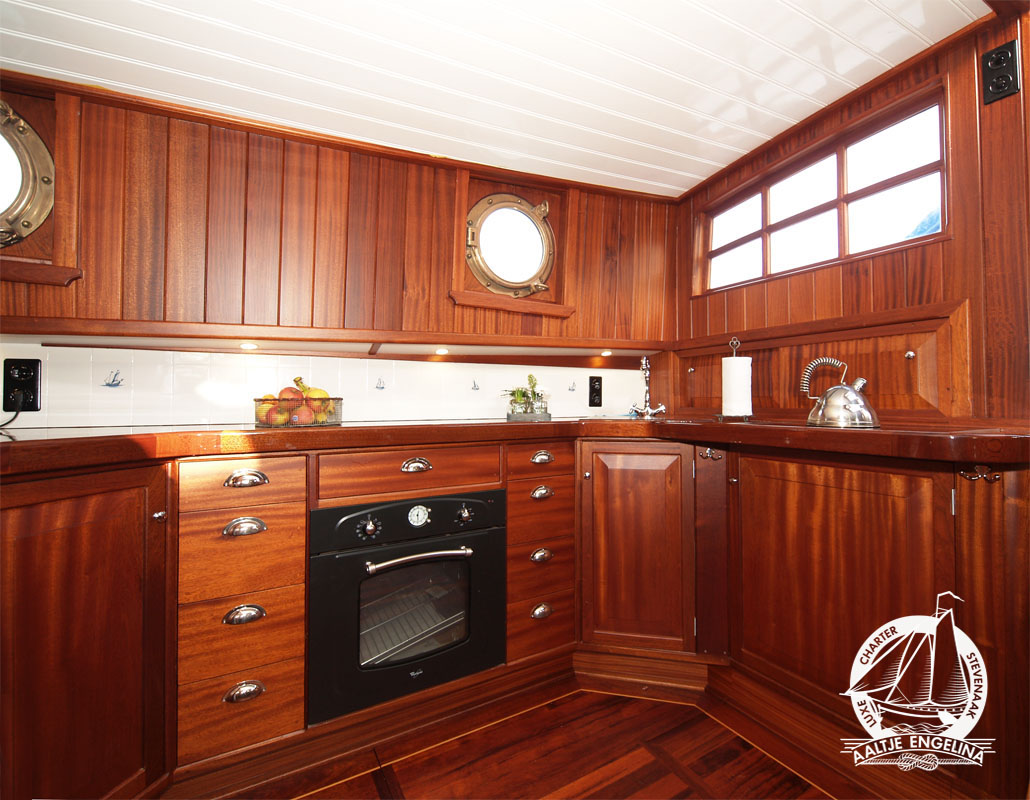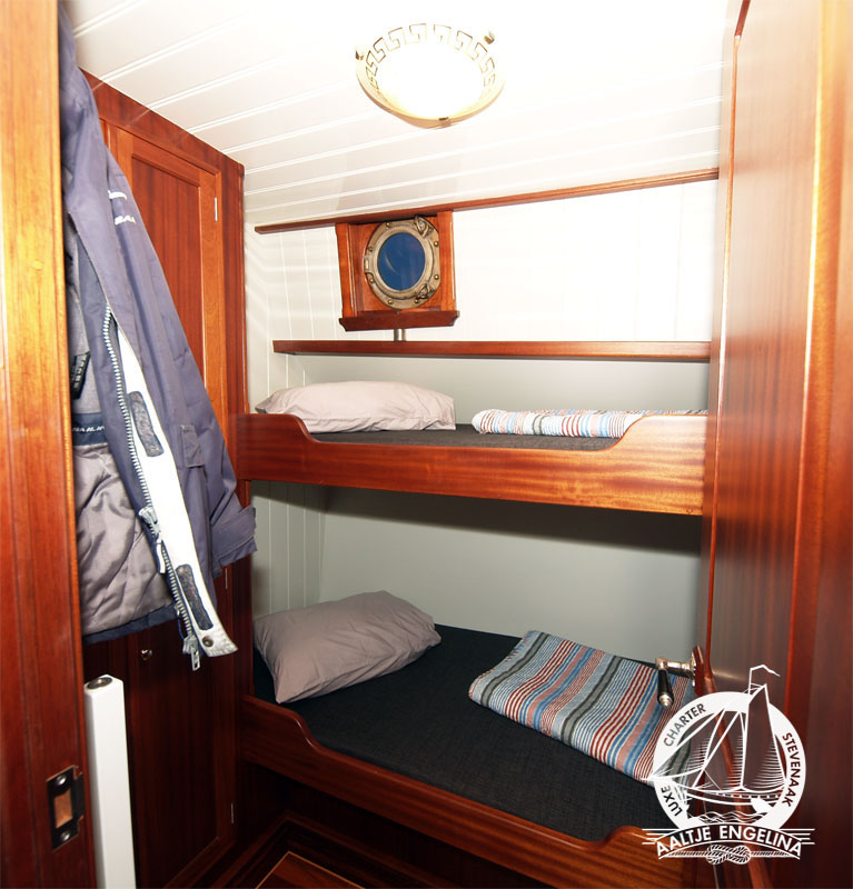 De slaaphutten zijn allemaal voorzien van warm en koud stromend water, 220 volt, voldoende hang- en legkasten, en centrale verwarming waarop u uw handoeken lekker warm kunt maken. en 220 volt. Er zijn twee douche toilet units, beide voorzien van centrale verwarming 220 volt en een wastafel met warm en koud stromend water. In het voorste gedeelte van het schip vindt u een salon met lage banken en tafels, in het achterste gedeelte de keuken met een grote zithoek waar gezellig met elkaar gegeten kan worden. De keuken is uitgerust met een 4-pits electrisch kooktoestel, vaatwasser, oven, grote koelkast ...