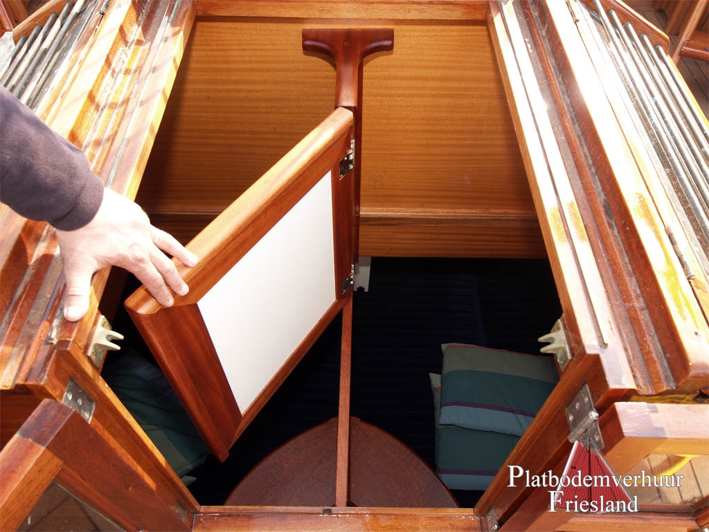 Het achterdek is uitgerust met genoeg zitplaatsen, een grote tafel (op dezelfde ingang van Achteronder ) waar je kunt eten met de hele crew.