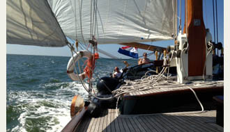 • Vom Liegeplatz der ELISABETH erreicht man entspannt in ca. 15 Minuten an der Schleuse zum IJsselmeer. Abhängig von der Windrichtung segeln Sie entlang der friesischen Küste Richtung Norden (Hindeloopen, Workum, Makkum) um dann die Schleuse Kornwerderzand zu passieren um einen Wattenmeertörn zu fahren. Einen detaillierten Segeltörnvorschlag dieser Route finden Sie unter: eine Woche Wattenmeer ab Stavoren. | |