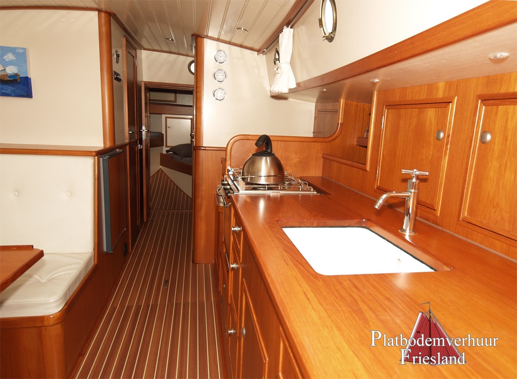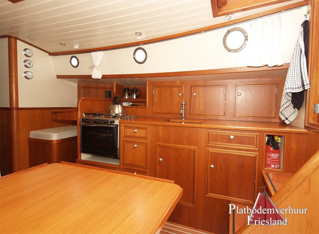 Unsere kleinste Lemsteraak, die "Elisabeth" (seit ein paar Jahren verfügbar und beliebt auf dem Chartermarkt), gebaut für die private Nutzung als handsames Familienschiff. Gemütliches Interieur für max. 7 Personen, eine Kombüse an Steuerbord im Salon eingebaut, mit 3-Flammen Gaskocher und Kühlschrank, kleiner Kartentisch, U - Bank mit Tisch.