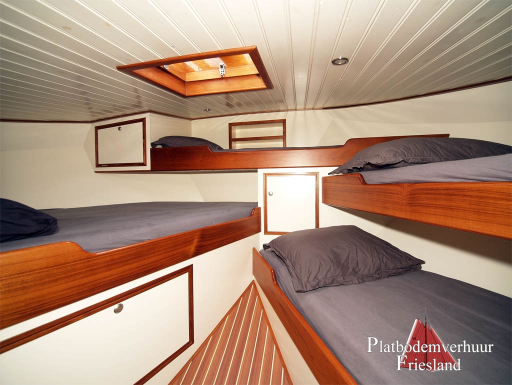 Sieben feste Schlafplätze, eine Eignerskabine mit Doppelbett und eine Kabine mit einem Doppel und drei Einzelbetten.