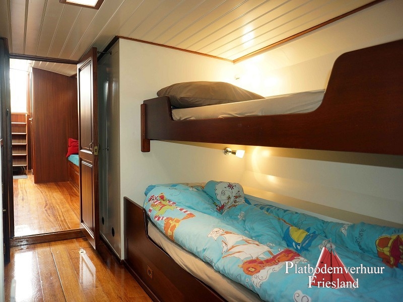 Het schip kan hydraulisch worden bestuurd met een stuurwiel. Benedendeks nodigt een grote salon en een volledig uitgeruste keuken uit tot een gezellig verblijf. Het schip heeft 2 hutten voor 2 personen en 1 hut voor 4 personen.